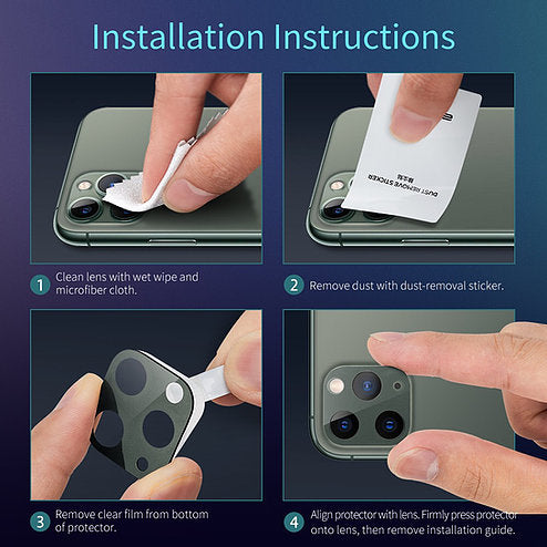 - LIBRE DE BURBUJAS Y EQUIPO: Diseñado para adaptarse perfectamente a la lente de la cámara del iPhone 11 Pro/ 11 Pro Max. Incluye un kit de instalación completo, para una instalación fácil y sin burbujas.