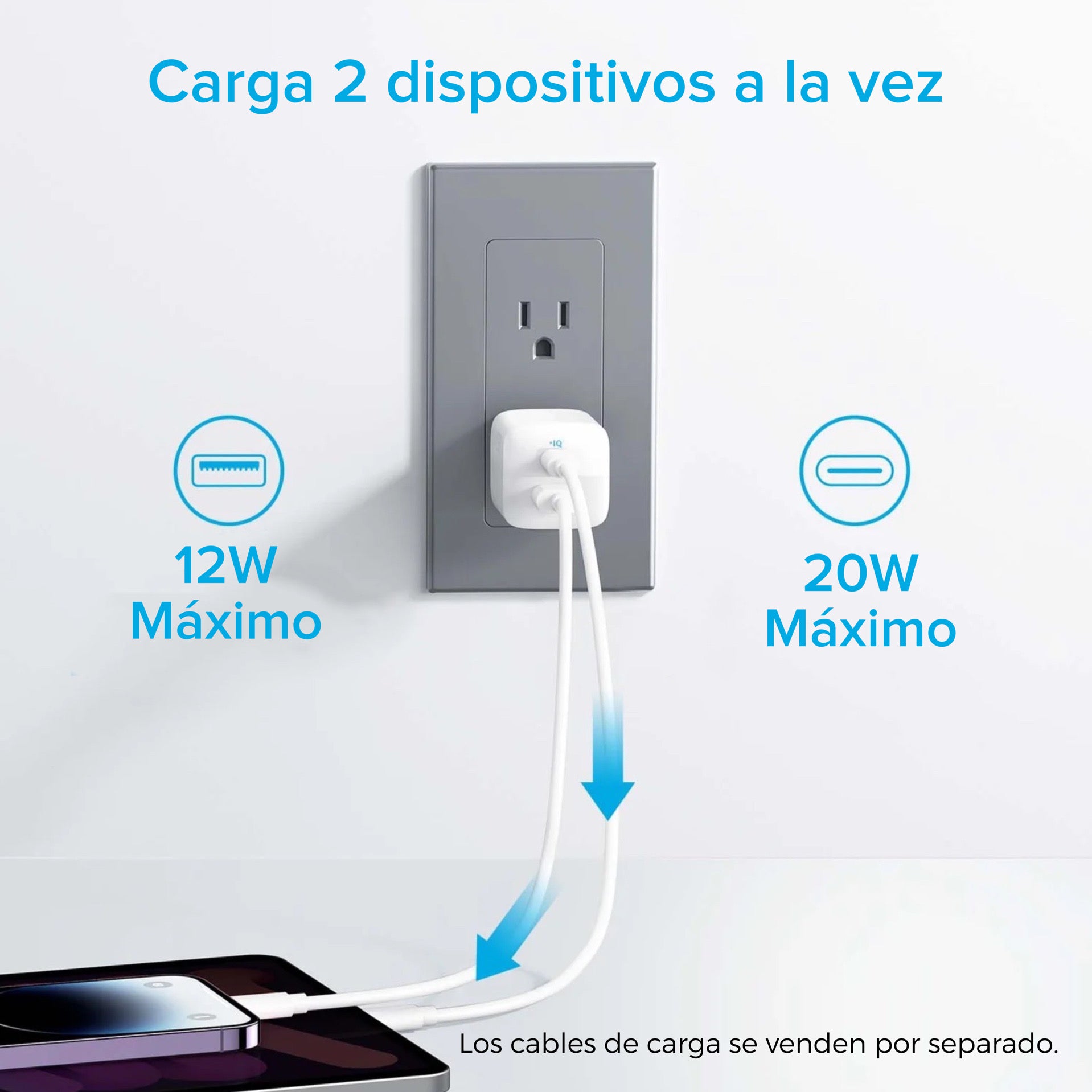 2 en 1: con un puerto USB-C y un puerto USB-A, ahora puedes cargar hasta 2 dispositivos simultáneamente.