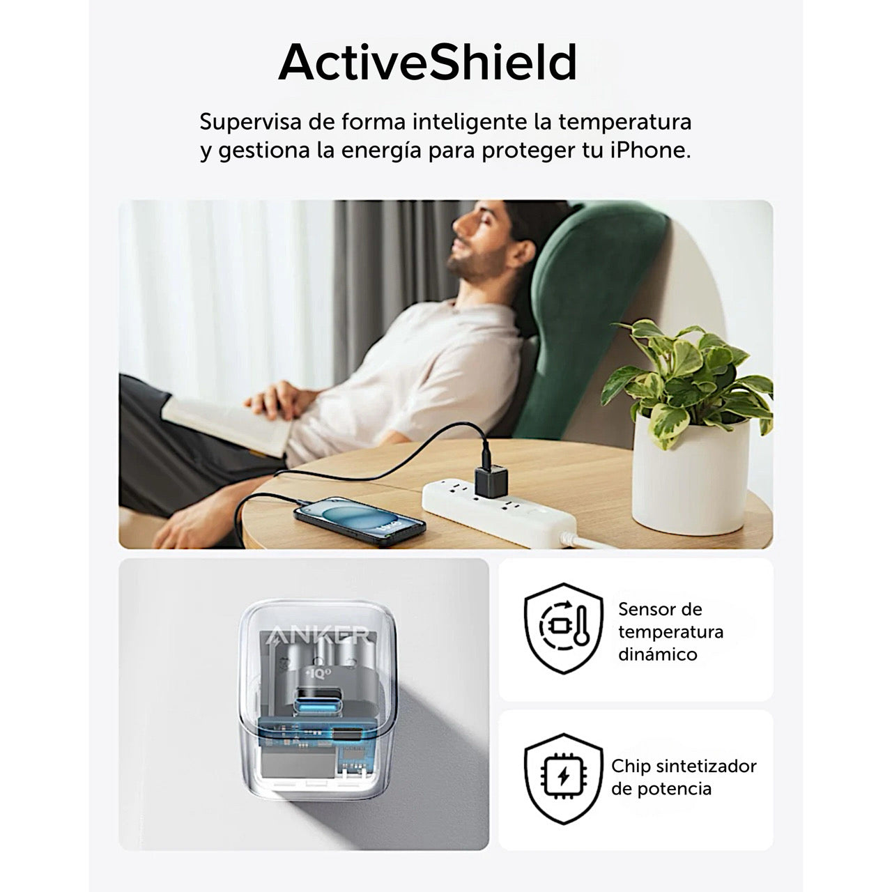 Equipado con nuestro nuevo sistema de seguridad ActiveShield para ofrecer una protección mejorada. Cuenta con un sensor de temperatura dinámico que monitorea activamente la temperatura y un chip sintonizador de potencia que ajusta la potencia de salida para proteger su dispositivo conectado.