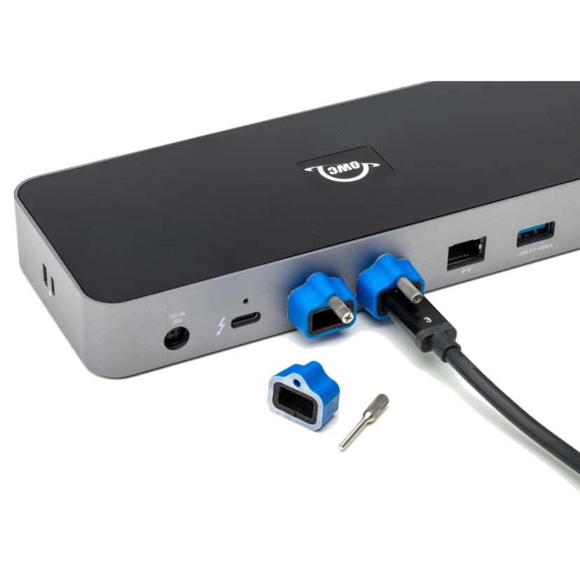Los espacios de trabajo activos exponen el equipo a golpes y empujones inesperados. Los estabilizadores de cable personalizados OWC ClingOn (disponibles por separado) se atornillan en la carcasa de OWC Dock o OWC Drive para reducir, si no eliminar por completo, la tensión del cable en las conexiones Thunderbolt y USB-C para que pueda trabajar con la máxima confianza incluso en los entornos de mayor tráfico peatonal.