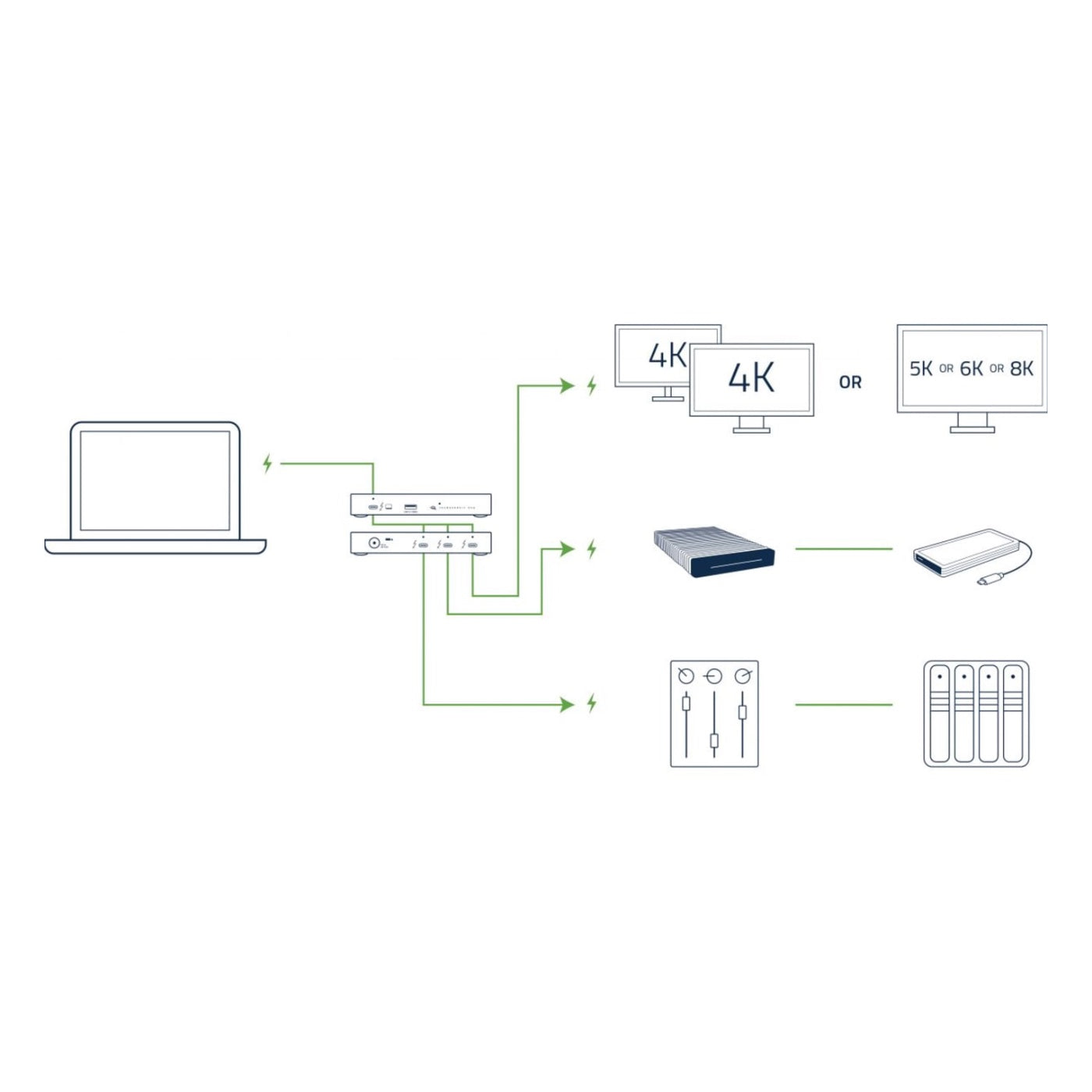 - Administre más dispositivos: conecte almacenamiento, hasta dos pantallas 4K o una pantalla 5K/6K/8K, múltiples accesorios... lo que sea, puede usarlo