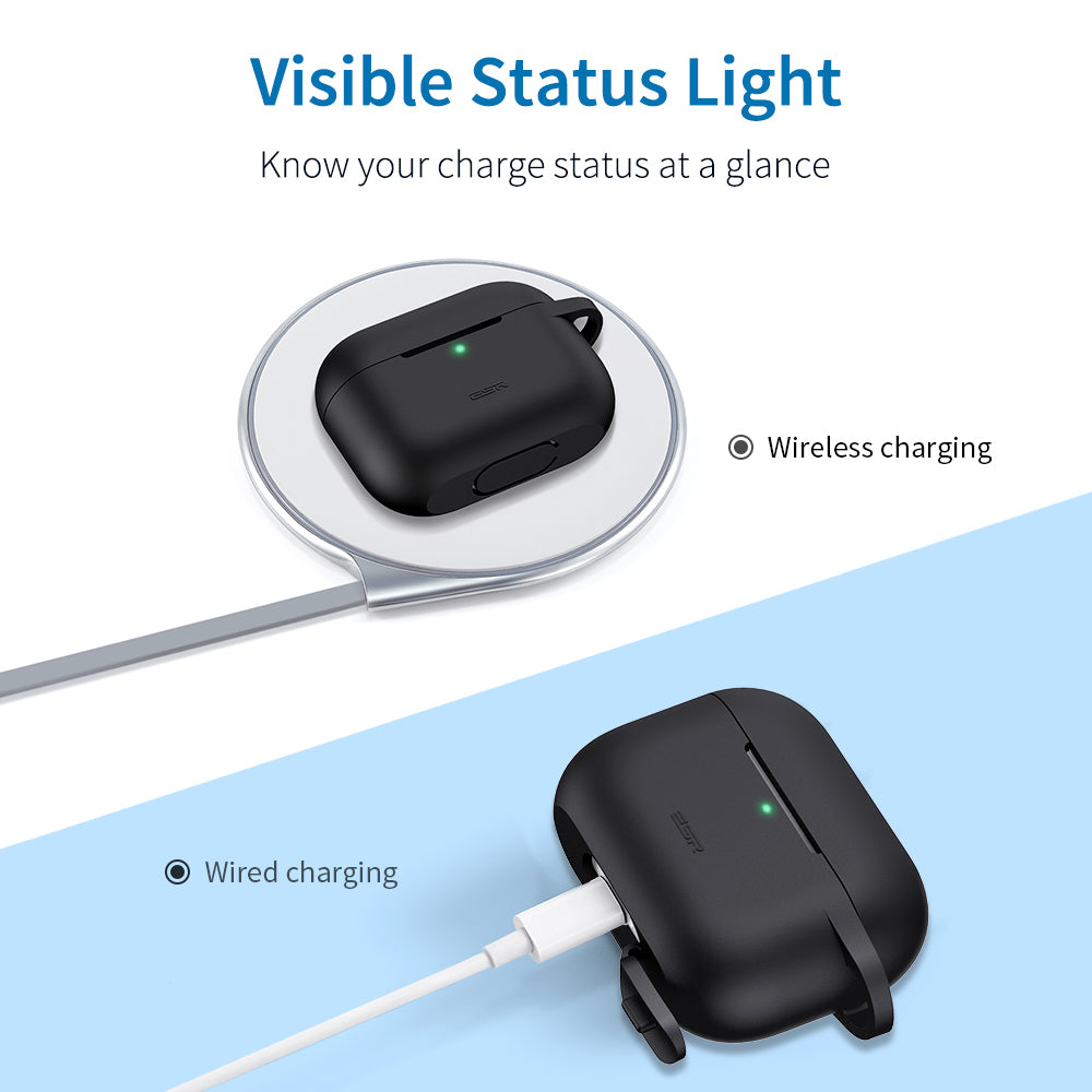 •Fácil de llevar: El diseño del llavero y el mosquetón gratuito hacen que el transporte del estuche de carga sea más fácil que nunca. Nunca más tendrás que preocuparte por perder tus AirPods.