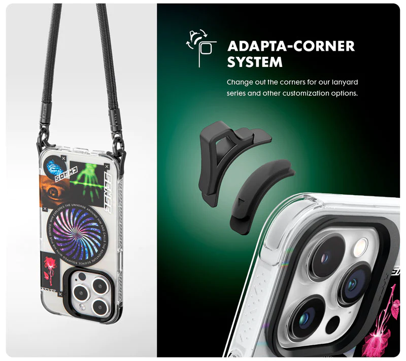 El innovador sistema Adapta-Corner que le permite cambiar fácilmente entre tres características intercambiables: desde una manivela, hasta esquinas de protección adicional o un soporte de cordón, este estuche se adapta a su estilo de vida sin problemas.