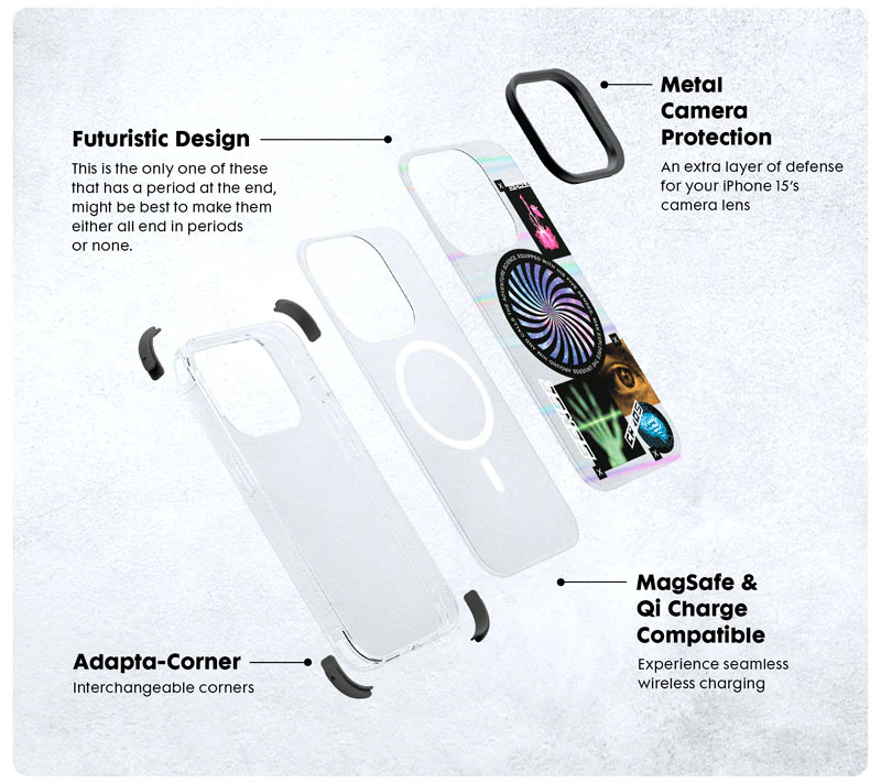 Experimenta una carga inalámbrica sin problemas con POP COSMIC. Compatible con los accesorios MagSafe y la carga inalámbrica Qi, esto le permite encender su iPhone 15 sin esfuerzo sin la molestia de los cables.