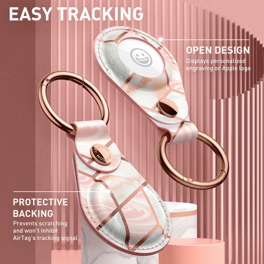 •El estuche de cuero PU con cierre a presión protege el AirTag de raspaduras y rayones