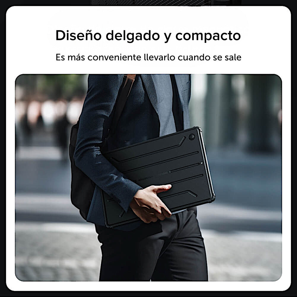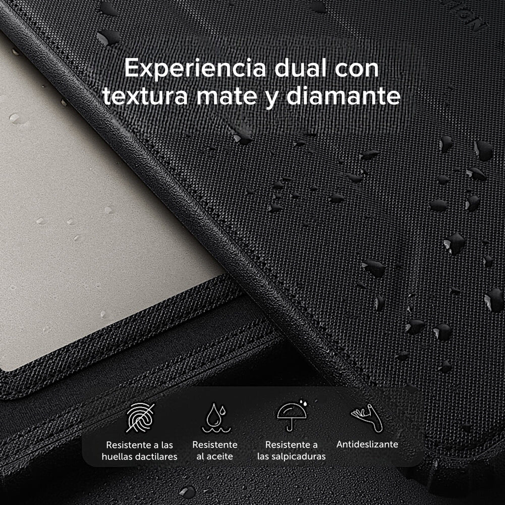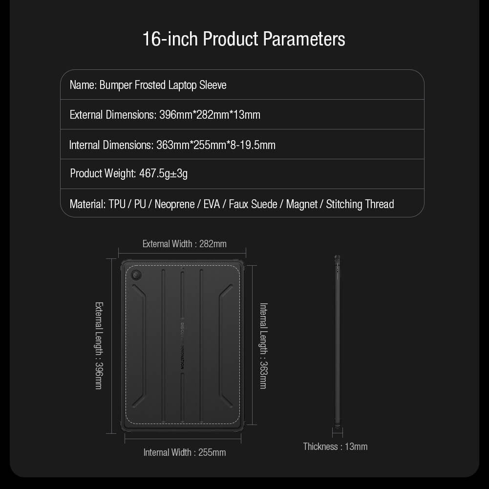 Bumper Frosted Laptop Sleeve, exterior elegante y robusto, simple pero imponente; la parte posterior presenta un diseño semitransparente esmerilado, que muestra el estilo del dispositivo original sin ser ostentoso; hecho a mano con un doble material de cuero PU + TPU, con forro de ultrafibra adicional para una protección excepcional; diseño de cierre magnético para un acceso más fácil al dispositivo; diseño delgado y compacto para una movilidad conveniente sobre la marcha.